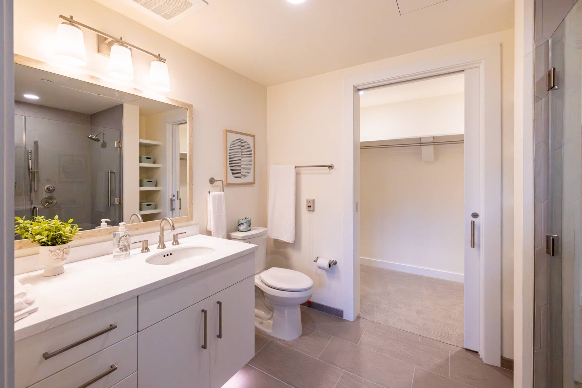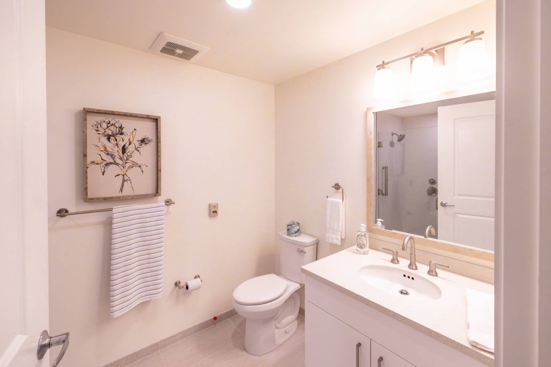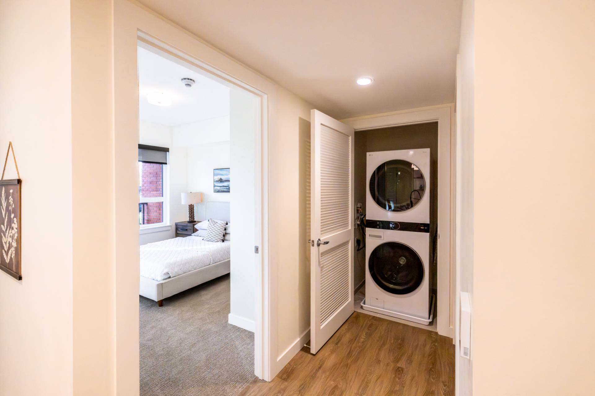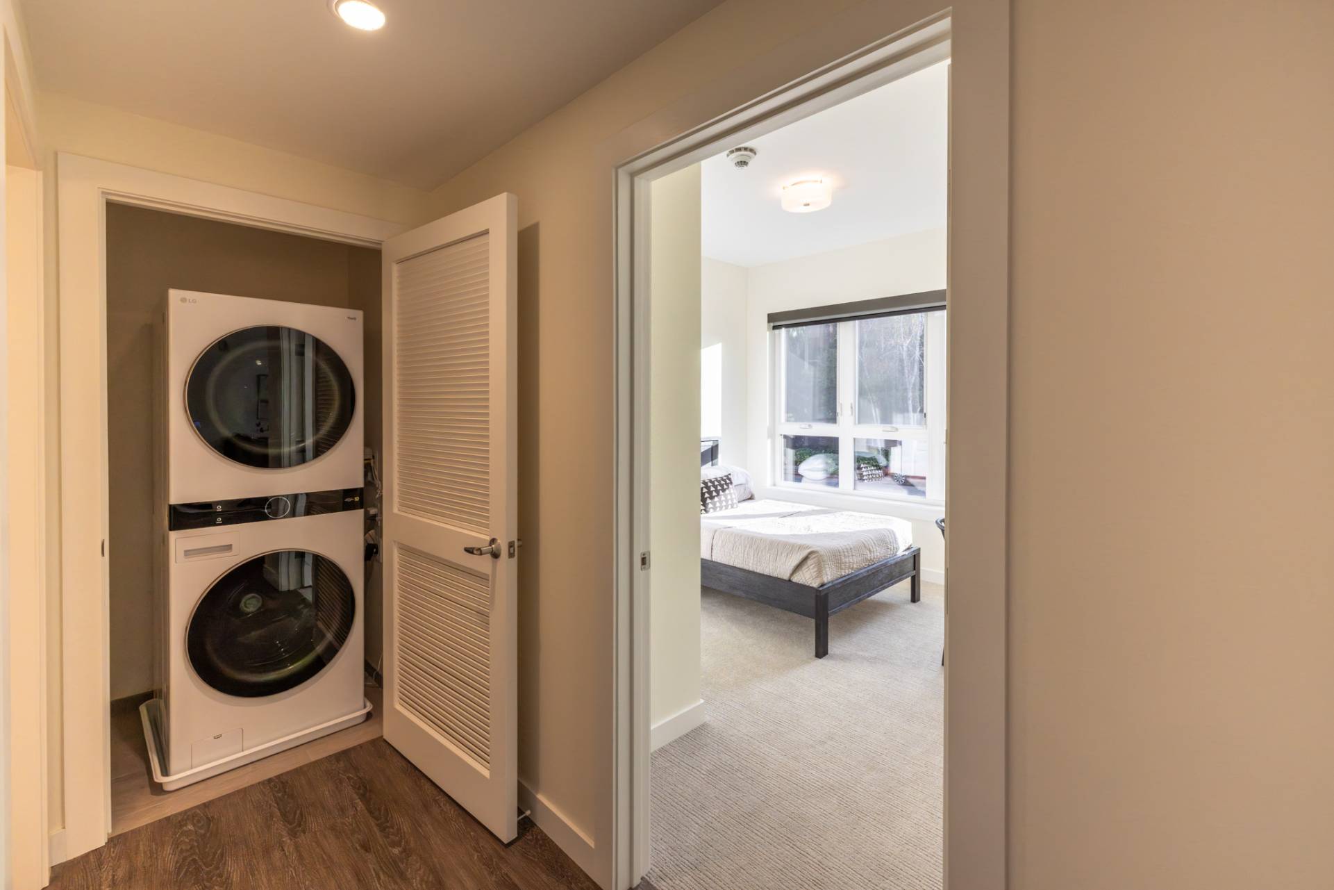 Here you'll find only the finest finishes, with luxury carpet in the bedrooms, quartz countertops in the kitchen, and Corian® countertops in the bath, stainless steel appliances, luxury vinyl plank flooring throughout the kitchen and living areas, and premier cabinetry with under-cabinet lighting in the kitchen.